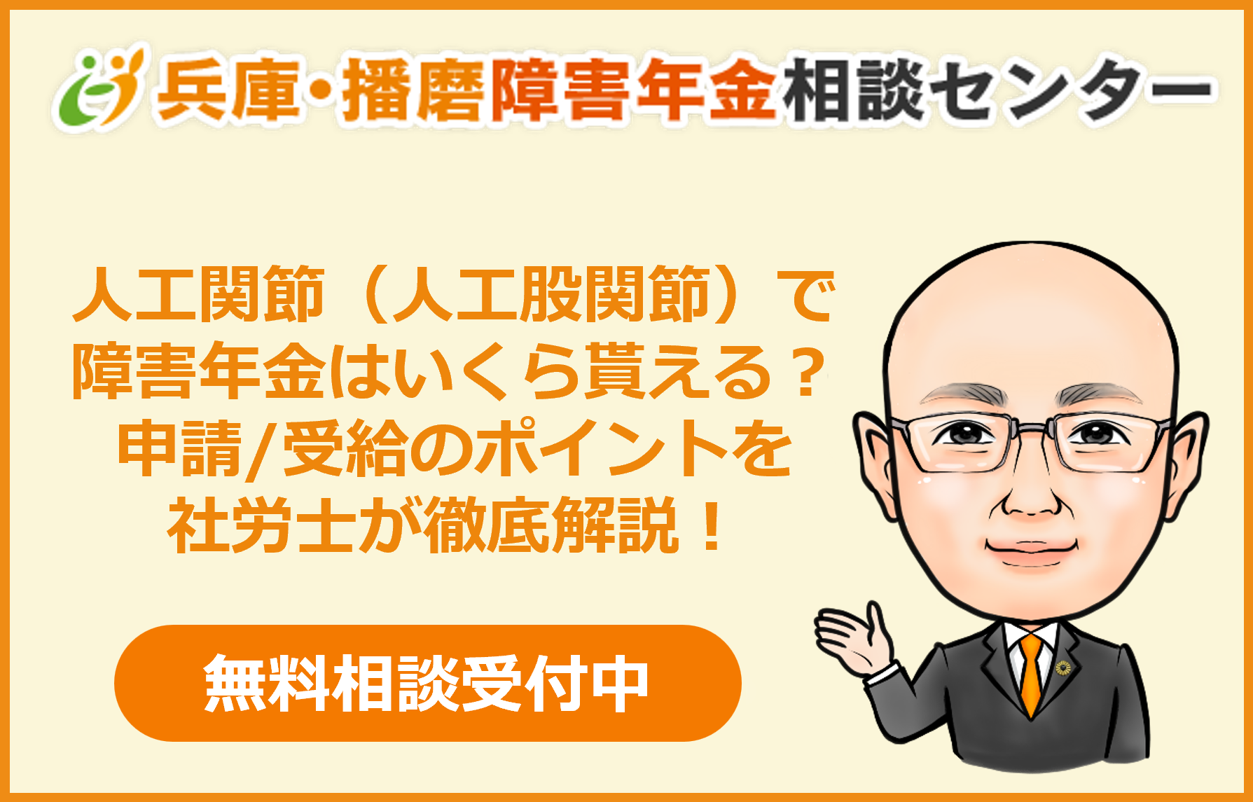兵庫で障害年金の申請なら兵庫・姫路・播磨障害年金相談センター > 障害年金について > 人工関節(人工股関節)で障害年金はいくら貰える?申請/受給のポイント・必要書類を社労士が徹底解説! > 佐伯先生人工関節